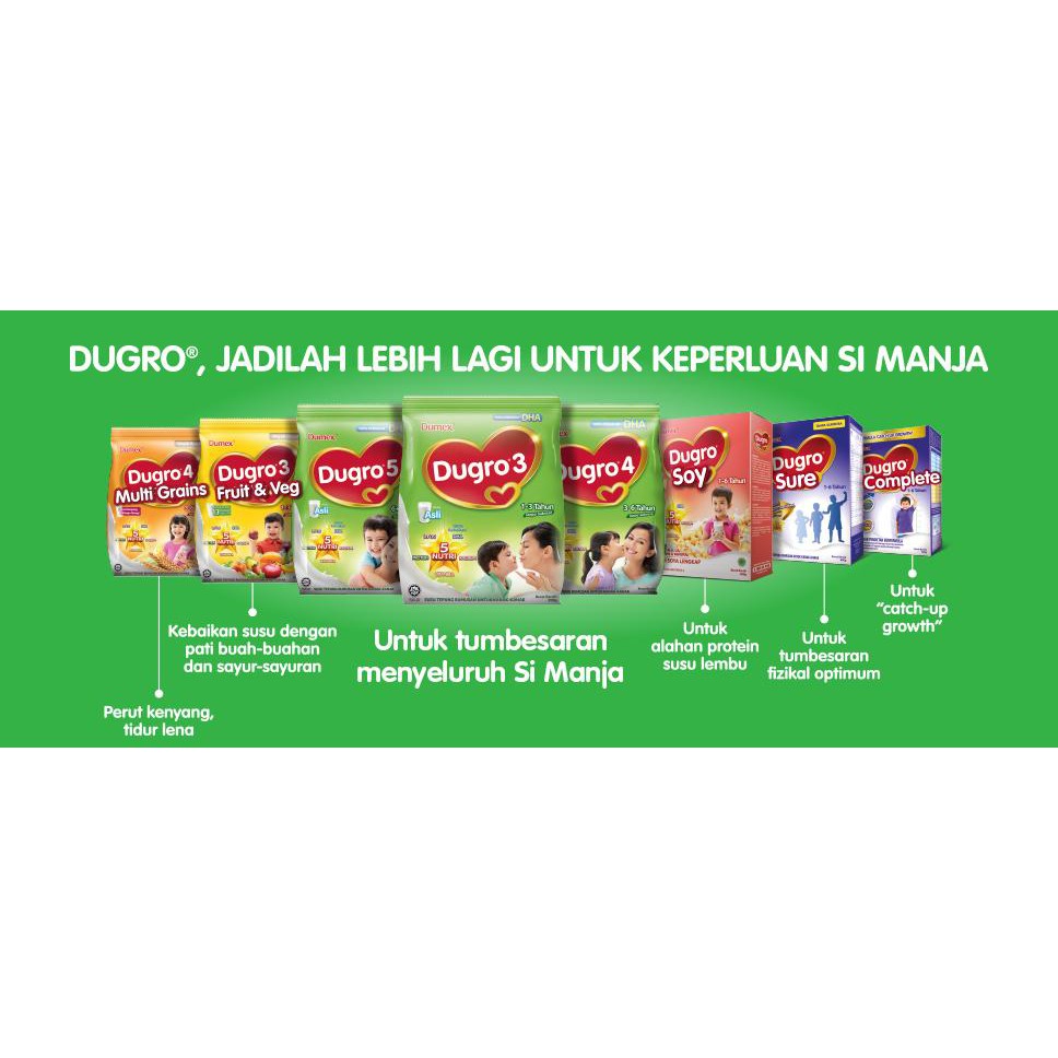 Baik buah dan susu. Web Ni la produk2 baru susu Dugroharga pun okberpatutan Tekak beralih arahpilihla Dugro Dumexsatu utk Adam utk 1 tahunsatu lagi utk Alya 5 tahun. Web Dumex Dugro Fruit Veg Step 3 4 dan 5 mengandungi kebaikan NextGen NUTRI dengan Active Iron dan No Sucrose diperkaya dengan 13 ekstrak buah.